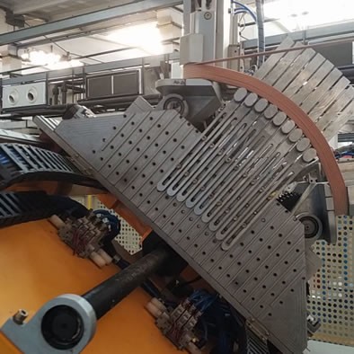 主要由放線機構、理線機構、入線組合機構,可調扁繞模具組合機構,弧度轉繞機構,主機旋轉組合機構以及電氣控制系統(tǒng)等幾大部分組成。
